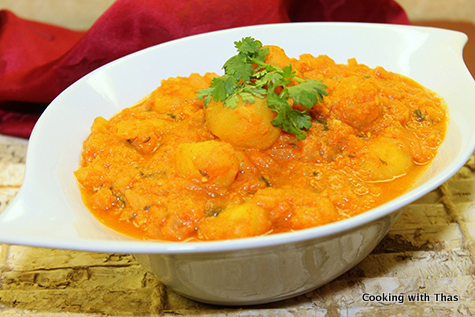 I made this in the Instant Pot, firstly pressure cooked the baby potatoes for 5 minutes with QPR. Made the tomato-yogurt gravy and added the baby potatoes and cooked them in the gravy. To add richness, added almond paste. Tasted delish, can be served with chapati, poori, naan, rice etc.