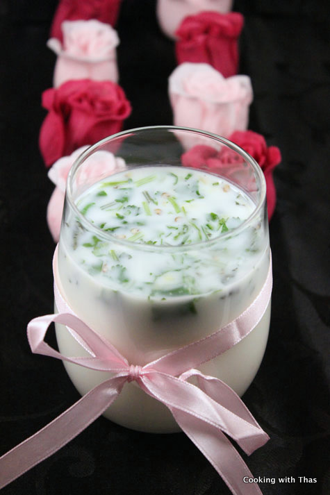 Most of the people in my hometown prefer a hint of spiciness in their buttermilk and so we add green chilies. Cilantro and curry leaves are added to make it aromatic and grated ginger makes it even more flavorful. l totally love this way of making buttermilk and so haven’t yet bothered to make any great changes.