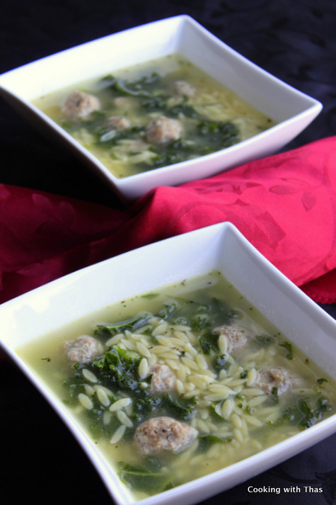 Meatballs, chicken stock, greens and orzo pasta are married into this soup; delicious and nourishing soup. A perfect soup for the soul…