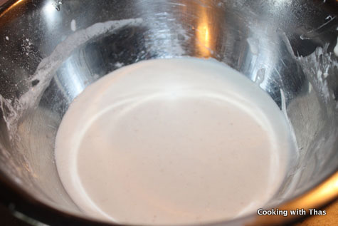 - Add oil, yogurt and warm water to the dry mixture and combine well without any lumps using a whisk.