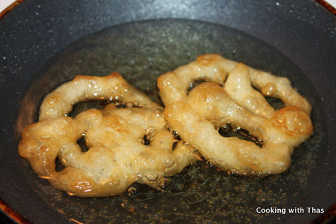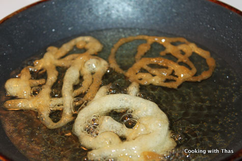 - Be very careful while squeezing the batter into the hot oil, you don’t want to spoil the fun by burning yourself.