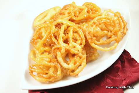 When I was in my hometown, I once had a chance to watch how Jalebis were made at a sweet store, it was in deed fascinating to me. That time I felt it was very difficult to make it at home and yes getting it from the store whenever I get the craving was the most easiest thing to do. However, a few weeks ago, I some how had the thought of making jalebi in my kitchen. If I get the thought that’s it, I have to follow it. While searching for the recipe online, as usual I bumped into many websites and blogs explaining how to make the perfect jalebis. Most of the recipes called for many hours of fermenting the batter and they were not that easy recipes. My quest for an easy recipe to make jalebi ended when I saw the video of jalebi making by the pretty ladies on “Show me the Curry”. After watching the video, I was like “that’s it! I can definitely make these” and in just about 45 minutes, I was seen indulged in these popular sweet of India.