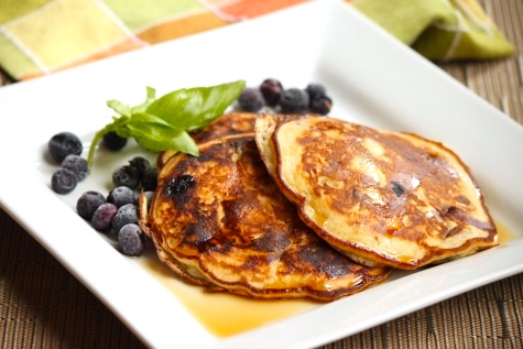 - Drizzle maple syrup over the pancakes, top with blueberries & enjoy.