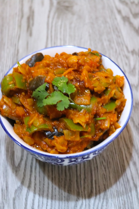 I had a few eggplants & green peppers harvested from my vegetable garden and I turned them into a delicious curry. Served with wheat dosa or crepes.
