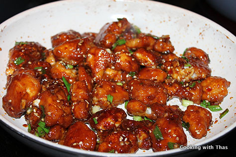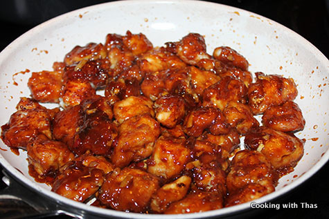 - Immediately, add the fried chicken to the sauce and combine well and stir fry for a minute.
