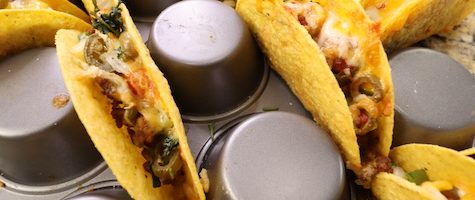 If the tacos don't have the stand-up bottom, flip a cupcake or muffin pan over.