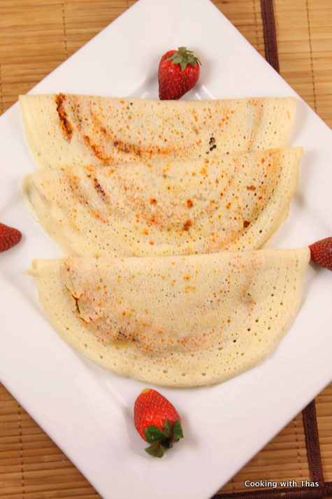 Dosa is one of the popular breakfast dishes in South India. Making dosa batter is quite a breeze, you just have to soak urad dal and rice (1:2 ratio) and grind it to a thick batter. After it has fermented by keeping the batter overnight, you could start making dosas just like you make crepes. The batter can be stored in the refrigerator for a week or so. Usually, dosa which looks like a crepe is served with sambar or chutney. Yet another common way of serving dosa is by spreading potato masala over it and folding it, now this is called Masala dosa.