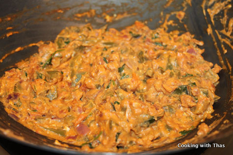 - Add tomato ketchup, combine well and cook for a few minutes.