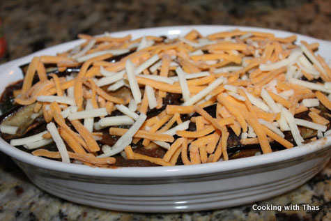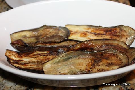 • Again, layer with pan-fried eggplant and spread the sauce over it.