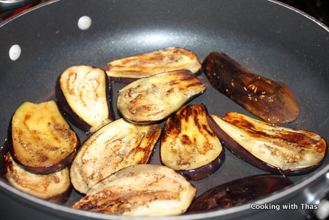 • Use American eggplants, I used  3 medium ones. Cut the eggplant 1 inch thick lengthwise.