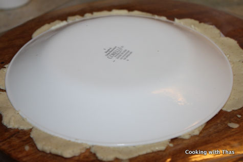 - If the sides of the rolled dough has cracked up, place a small round plate over it and press it into the dough.