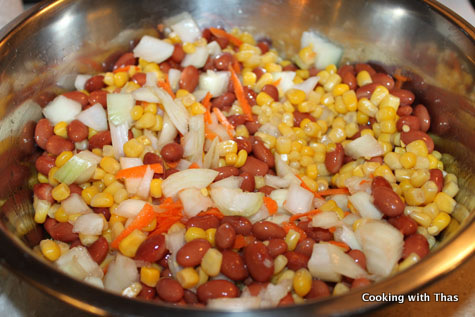 - In a bowl, combine all the above mentioned veggies for making the filling together.