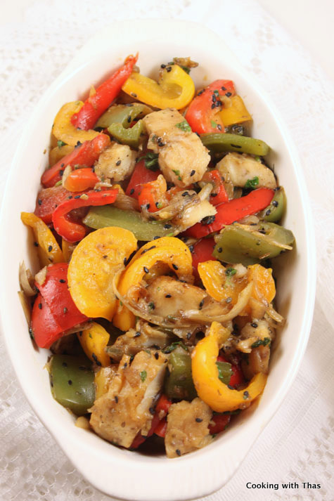 Mixed peppers when combined with fish tasted delicious and this has turned into one of my favorite dishes.