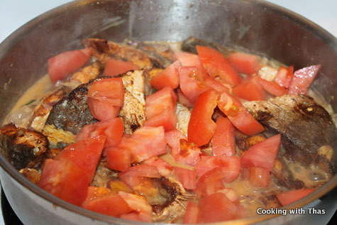 - Add the fried fish to the coconut milk and let it simmer for 3-4 minutes.
