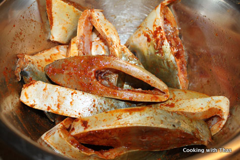 - Marinate the fish with the above mentioned ingredients ‘for marinating the fish’, keep aside for 15 minutes.