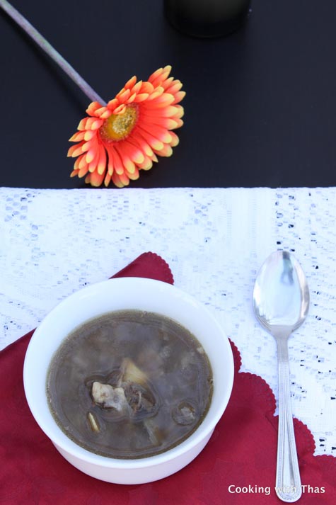 I’ve been always told by my grandma that this soup is very healthy, nutritious and good for my legs. Since it is made with goat legs, this soup is rich with bone marrow. Bone marrow is considered a real delicacy in many countries and is served at many fine restaurants. Bone marrows are good source of calcium, iron and protein. This soup has a high fat content, however the fat in bone marrow is not saturated fat. So I would say it’s good to have this soup once in a while and is a true delicacy. Make sure you make this with goat legs and not goat meat.