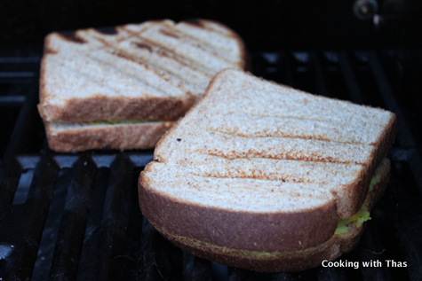 - Place the bread on the grill and let light golden brown grill marks form on the bottom side.