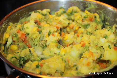 - Mixed veggies, chopped small- 1½ cups (carrot, corn, beans and peas)