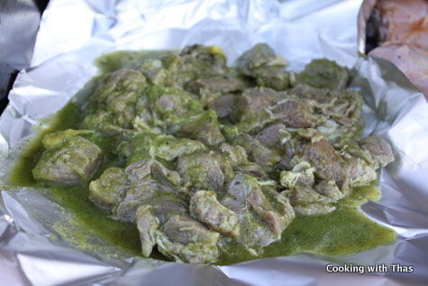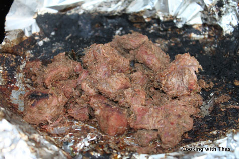 - Place the marinated beef on two aluminum foils. Stack 2 aluminum foil on top of each other and place the beef on it.