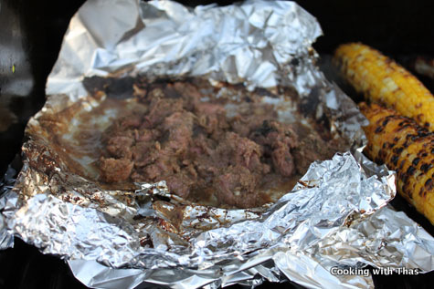 - If the aluminum foil turns dark brown (see the below picture), you could transfer the beef to a new aluminum foil and grill.