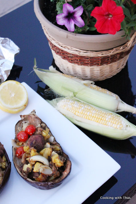 - Scoop it over grilled eggplant skin and serve hot along with grilled corn.