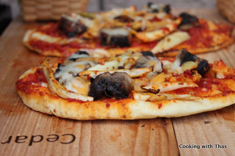 Grilled Sun dried tomato Naan Pizza topped with grilled Mushrooms and Fennel