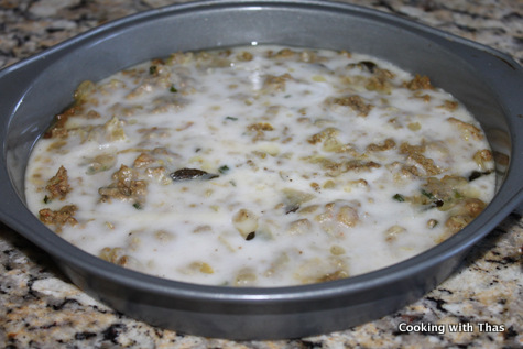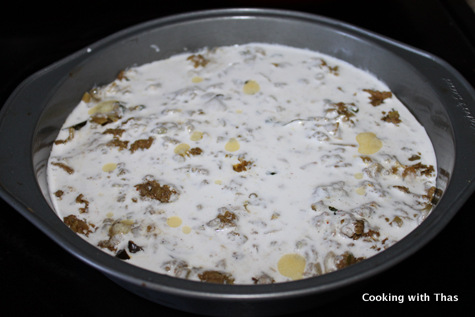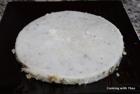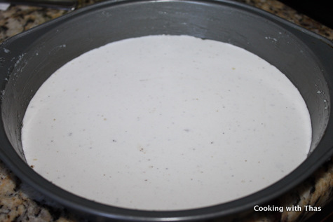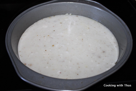 - I used a round cake pan to make this dish, you could use stainless steel plate that comes with the steamer.