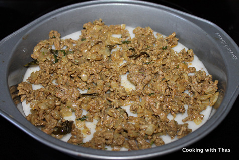 Rice batter and beef masala layered and steam cooked, it’s like a delicious rice and beef cake…