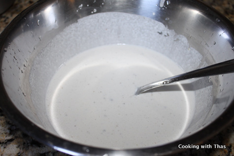 - Add the soaked rice to a blender jar along with coconut milk, grind to a smooth paste.