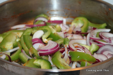 - In the same pan used for cooking the ground beef, add the chopped veggies (you could even use mushrooms, jalapeno etc).