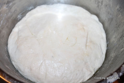 - Place the dough on a bowl greased with oil and cover the dough with a damp towel keep aside for 1 hour.