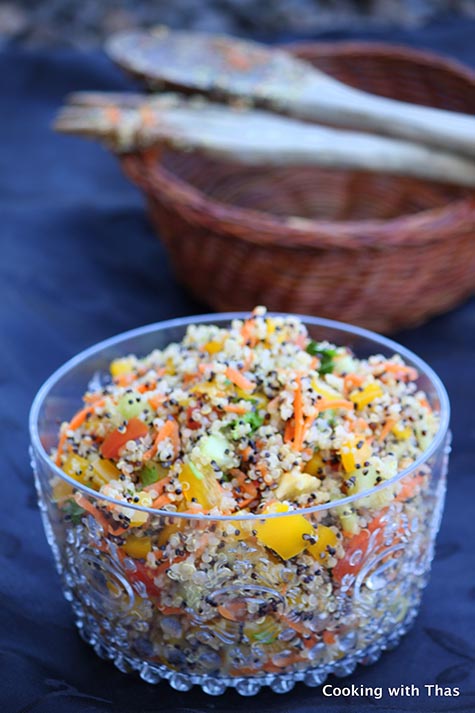 - Add cooked and cooled quinoa to the veggies, combine well.