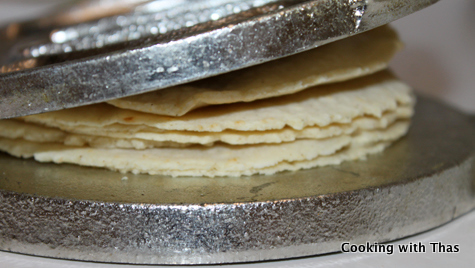• If you don’t have the tortilla press: Using a rolling pin, flatten the dough in between the sheets of plastic into a round, as thin as you can make it without tearing.