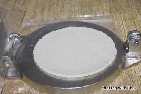 • If you have tortilla press: first, cut a plastic freezer bag into two and spread these on both sides of the press.
