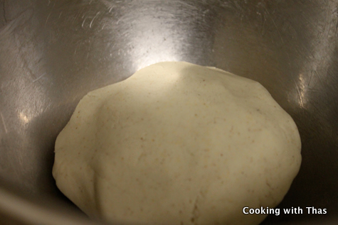 1. In a large bowl, add the flour and add warm water to it, knead it to a soft dough.