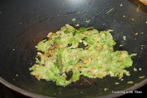 - Use the same pan or wok used for frying Idlis. Use only 2 tbsp oil used for frying the Idlis.