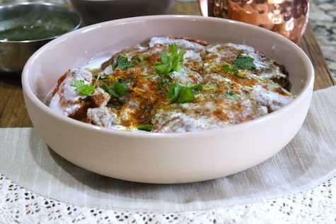 Once the vadas are fried, they are immediately soaked in a mixture of beaten yogurt and spices like salt, sugar, and chaat masala. The soaked vadas are then garnished with green and tamarind chutneys, chopped coriander leaves, and other toppings.