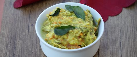 Avial is a Kerala vegetarian dish made with mixed veggies, cooked along with coconut. For making the dish tangy, either raw mangoes or yogurt or tamarind are added. In this recipe, I’ve added 1 raw mango, towards the end I had to add 1/2 cup yogurt as the mango wasn’t that sour.