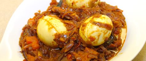 - Using a sharp knife, put a few lines on the hard-boiled eggs so that the masala will get into the eggs, add the eggs to the cooked onion-tomato mixture.