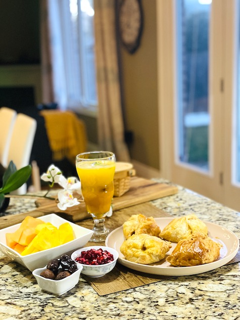 - Place the stuffed puff pastry into the air fryer basket, set the temperature to 400 F or 200 C & time to 25 minutes.