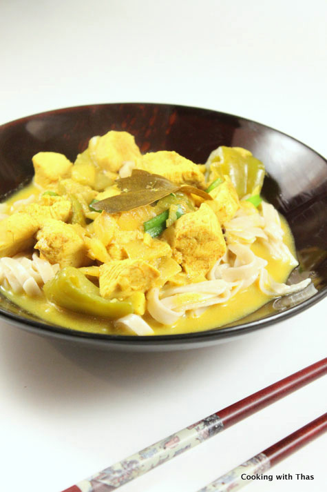 Khow Suey, is a soup meal made of noodles and curried chicken in coconut milk and is served with a variety of condiments. It’s rich, flavorful and aromatic, I can tell you one thing, you won’t be able to stop with just one bowl of this.