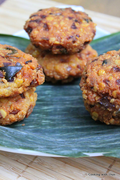 •Any leftover fritters can be wrapped in a plantain leaf & refrigerated. Microwave it before serving, the plantain leaf would give a nice aroma to the fritters.