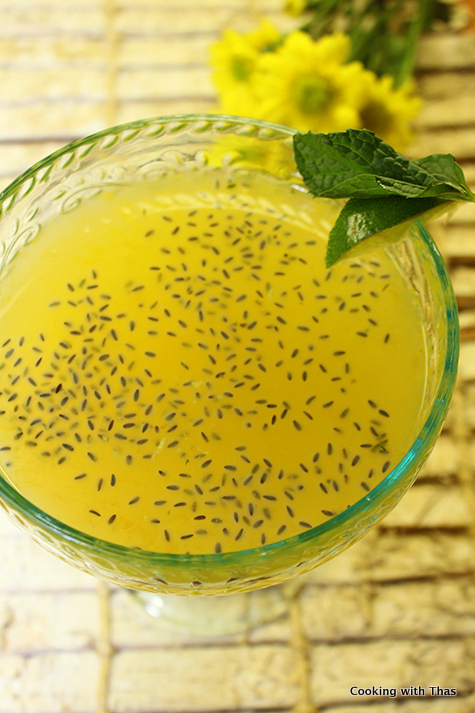 This mocktail is one of my favorites- the ingredients are always available in my refrigerator. Freshly squeezed lime juice, orange juice, grated ginger and mint leaves- this combo to me is a match made in paradise. Perfect Summer drink. I’ve also added soaked basil seeds or sabja or tukmaria, these are an excellent coolant and has remarkable health benefits too.