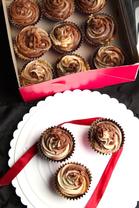 I frosted the cupcakes with swirled frosting, one frosting with two flavors: vanilla and chocolate.