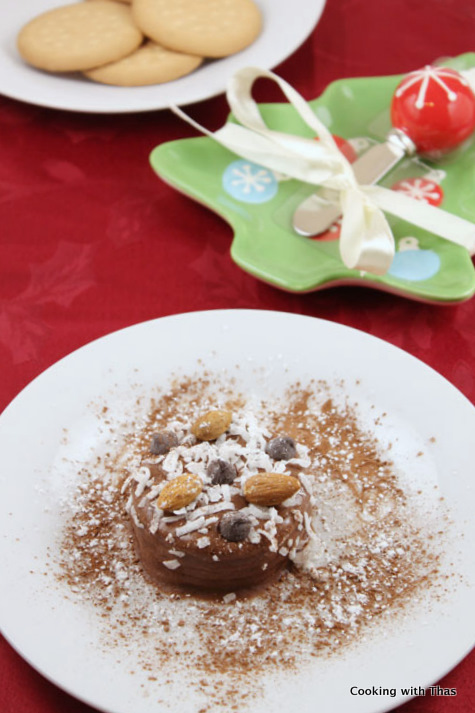 A few days ago there was a bake sale event at work, for that I had baked a lot of cookies: chocolate marshmallow cookies. The money raised was donated to the Children’s Aid society. The cookie that I made was topped with chocolate frosting, all the cookies sold out, but I had some leftover frosting in the refrigerator. I somehow wanted to finish the frosting, I could have made a cake and spread the frosting over it. This week I am already high in sugar and the thought of working out for more hours made me let go the idea of making the cake. I was rather keen on making a petite dessert or a bite size dessert so that I can enjoy the sweetness without much guilt.