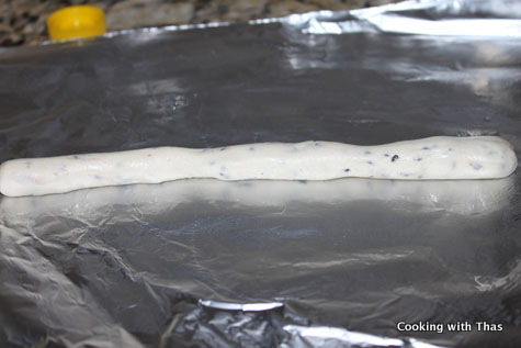 - Grease your hands with oil and roll the dough to thin long rope shape.