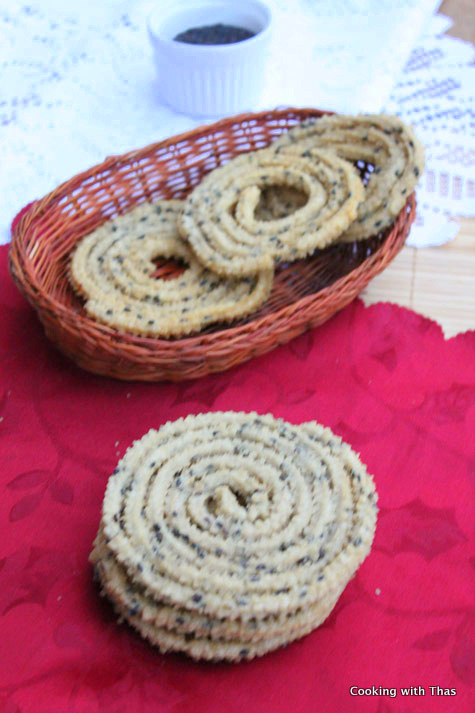 Murukku is a popular snack in South India. This snack always came along with my grandma when she visited us. Without a doubt, grandmas fried murukku tastes delicious. This is also available at almost all snack stores in South India, however home made murukku tastes better than the store bought ones.