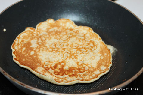 - Pour a spoonful of batter on the pan, let the bottom side cook well and turn golden brown.