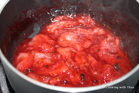 - Cook the above mentioned ingredients in a covered saucepan, till the strawberries are cooked well, about 15-20 minutes.