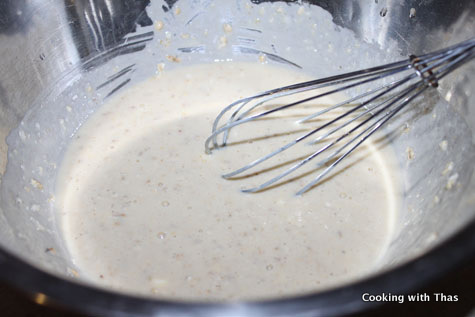- Combine well with a fork or whisk to a thick batter, let stand for a few minutes.